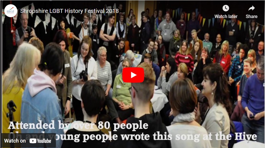 Nov292023ResourcesVideo https://www.youtube.com/watch?v=gFmQyT2NWhg Publication Date: 4 March 2018 Publisher: SAND Country: UK Length: 3:57 Categories: Resources, Video29 November 2023Leave a commentTags: CultureEngagementPost navigationPreviousPrevious post:70 Years through LGBT EyesNextNext post:Shropshire, Telford & Wrekin LGBT+ History Festival 2020Related PostsWrekin Housing Group – Small Steps Big Difference15 May 2025Much Wenlock & Cressage Medical Practice – Small Steps Big Difference15 May 2025Age UK Shropshire Telford & Wrekin and Citizens Advice Shropshire – Small Steps Big Difference15 May 2025Coverage Care Services Ltd – Small Steps Big Difference15 May 2025Community Resource – Social Prescribing – Small Steps Big Difference15 May 2025Cruse Bereavement Support (W Midlands) – Small Steps Big Difference15 May 2025